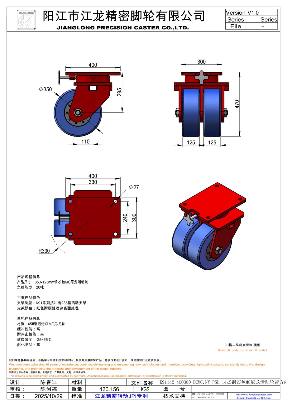 K91142-400300-DCMC.NY-PSL 14x5钢芯包MC尼龙活动轮带方向锁