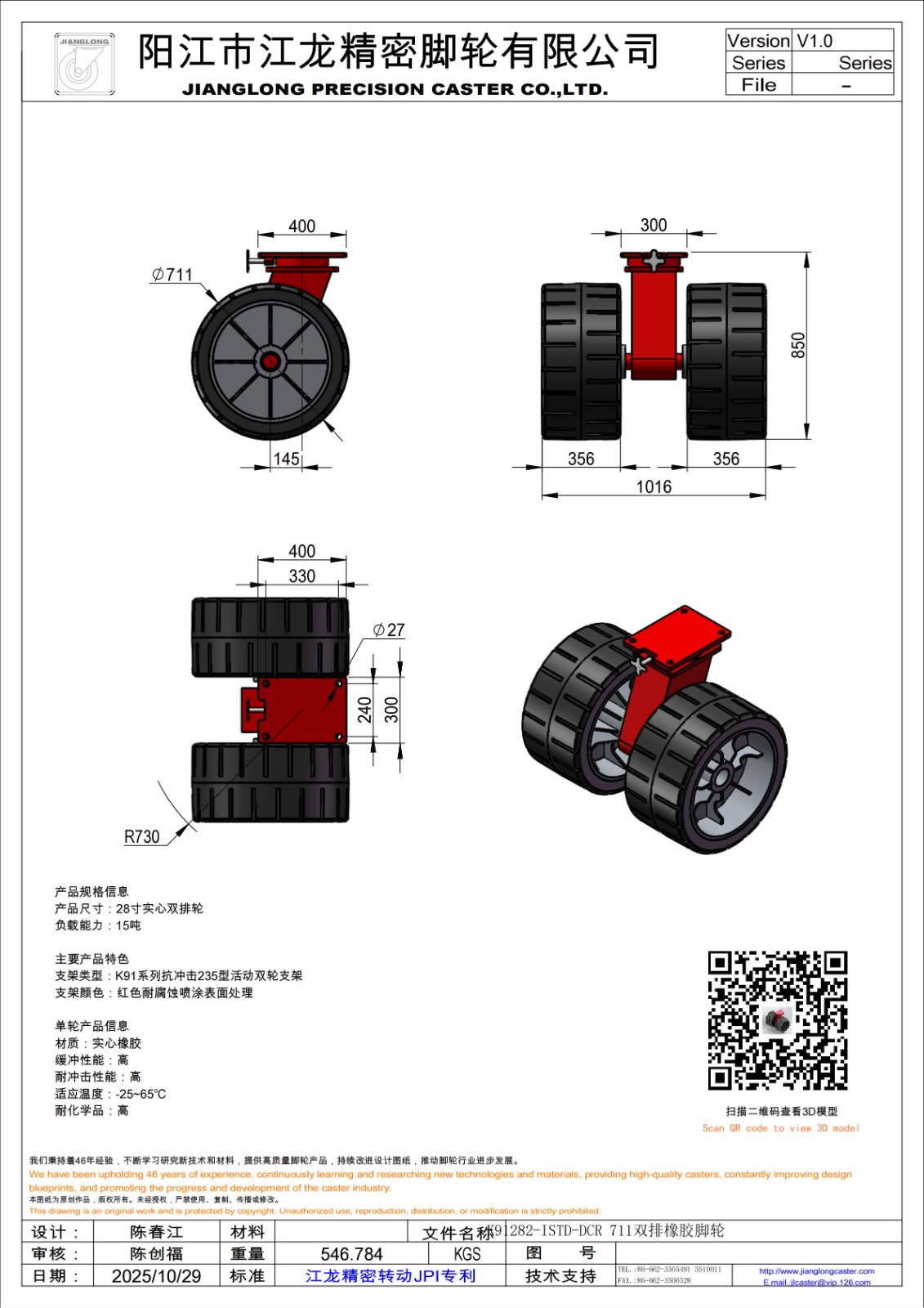 K91282-ISTD-DCR 711双排橡胶脚轮