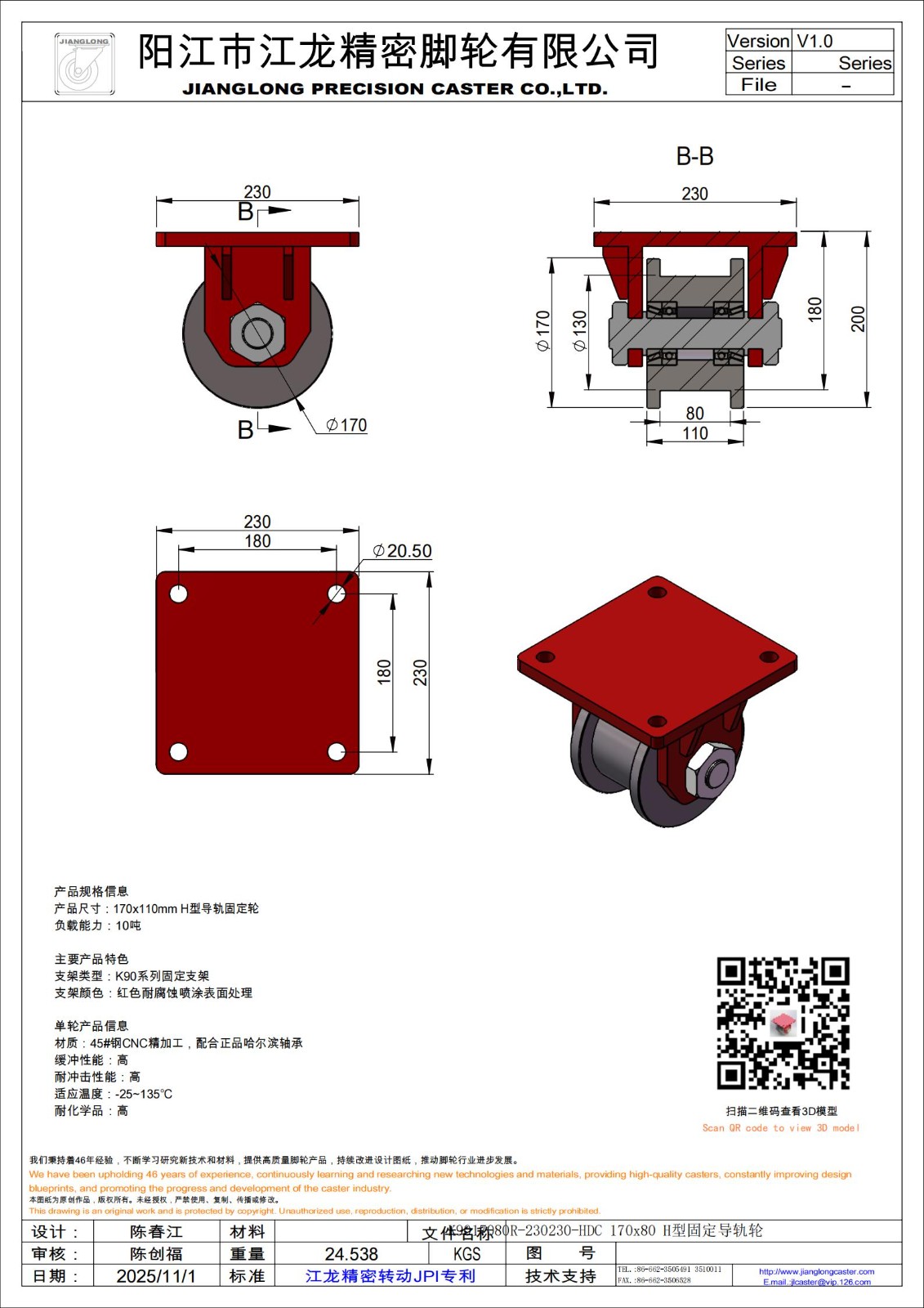 :K9017080R-230230-HDC 170x80 H型固定导轨轮