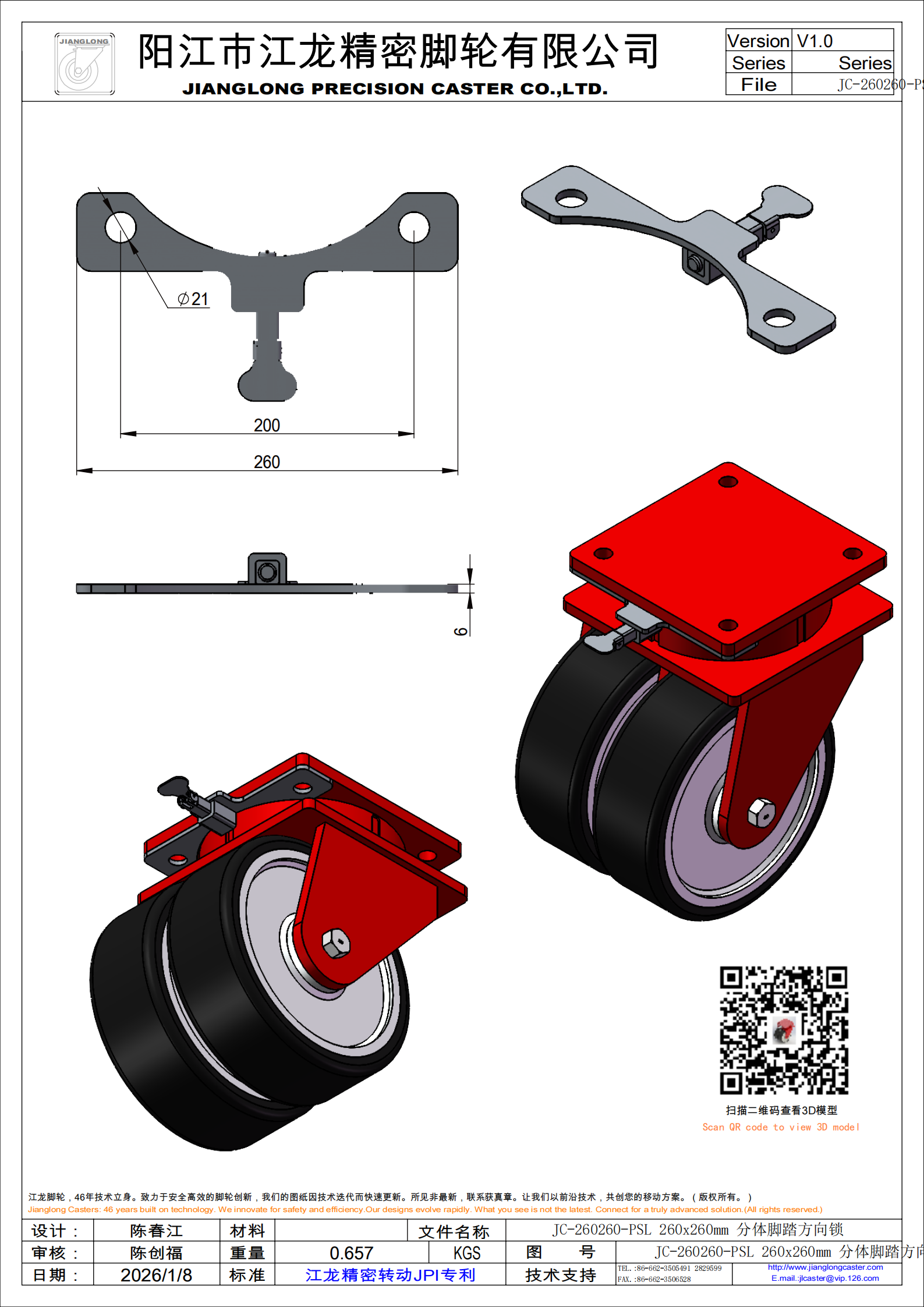 K90122-260260-DCPU PSL 12x4超重型钢芯包PU活动 分体方向锁
