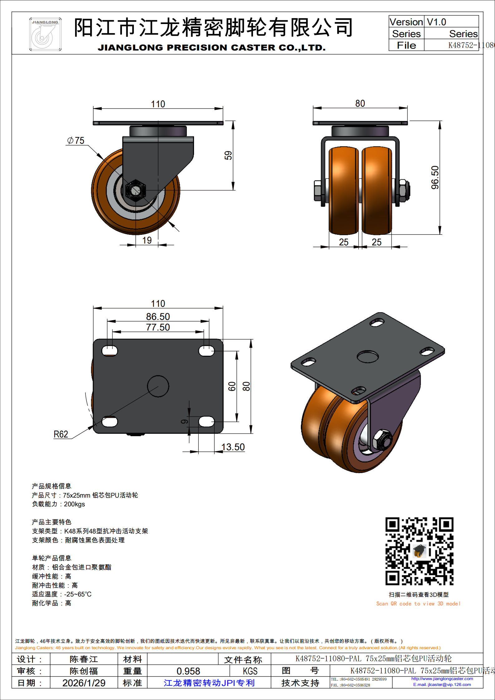 K48752-11080-PAL 75x25mm铝芯包PU活动轮.STL