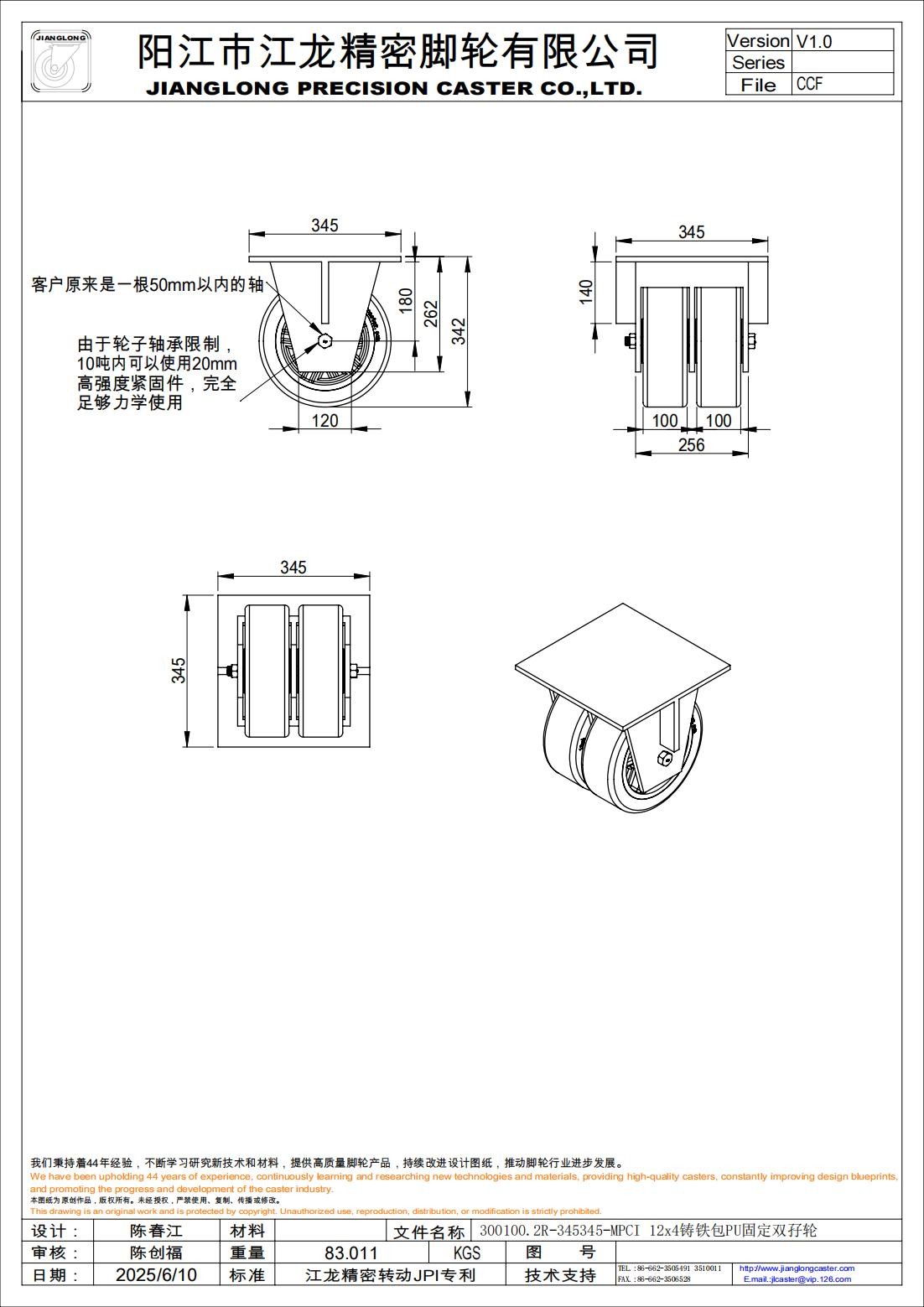 300100.2R-345345-MPCI 12x4铸铁包PU固定双孖轮