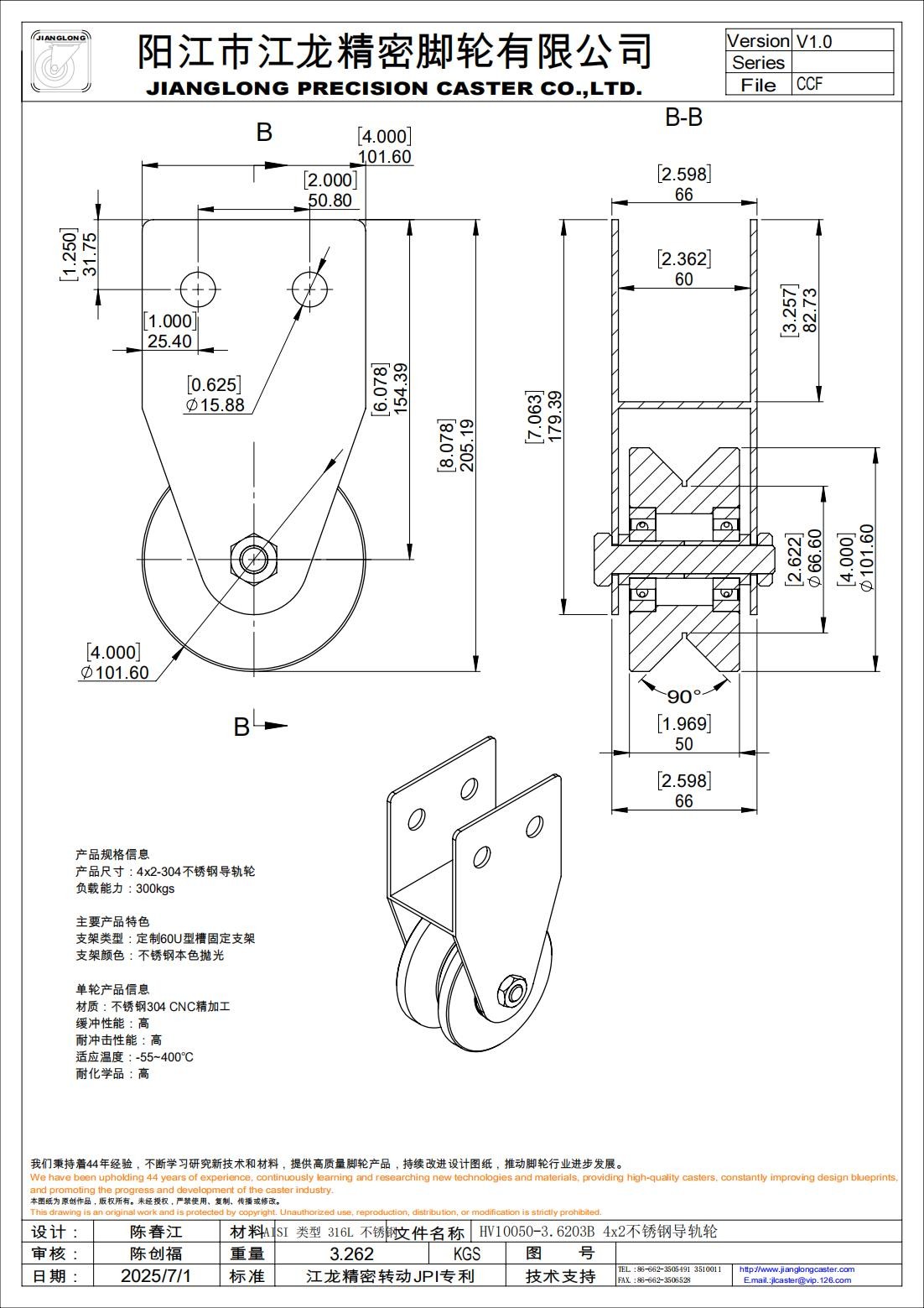 HV10050-3.6203B 4x2不锈钢导轨轮