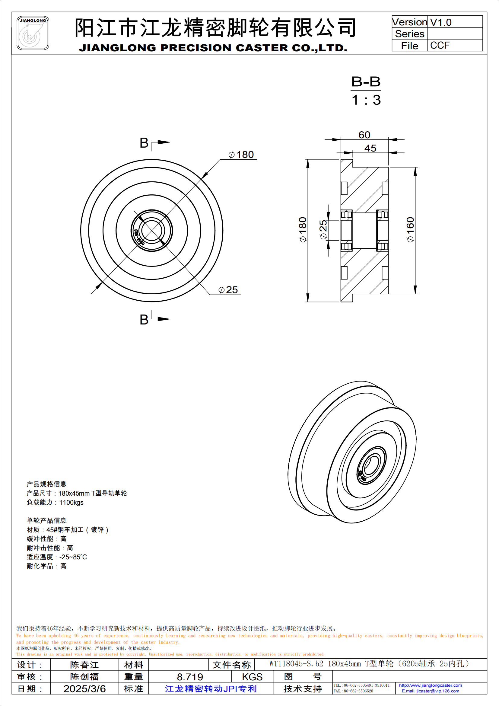 WT118045-S.b2 180x45mm T型单轮(6205轴承 25内孔).STL