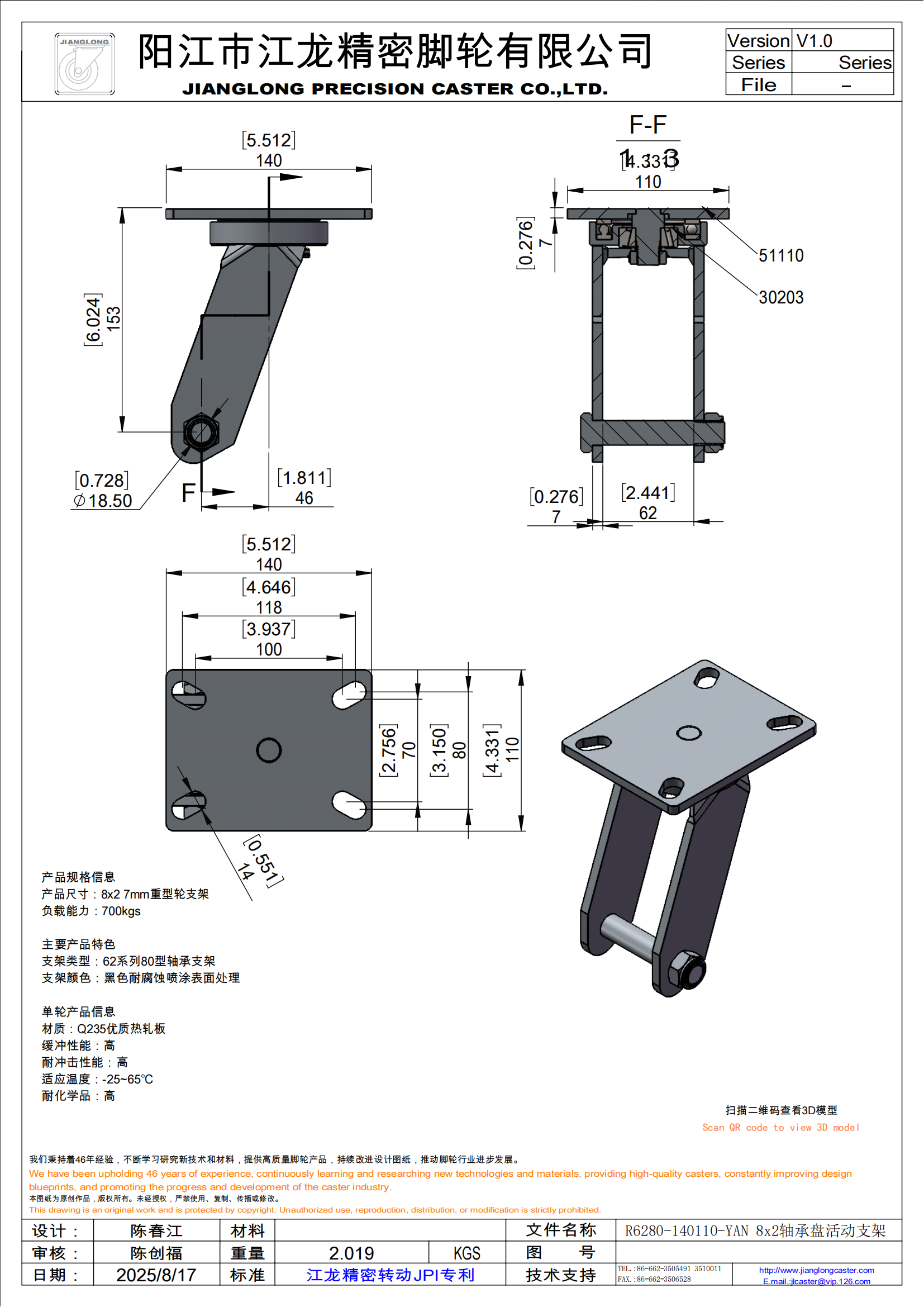 R6280-140110-YAN 8x2轴承盘活动支架