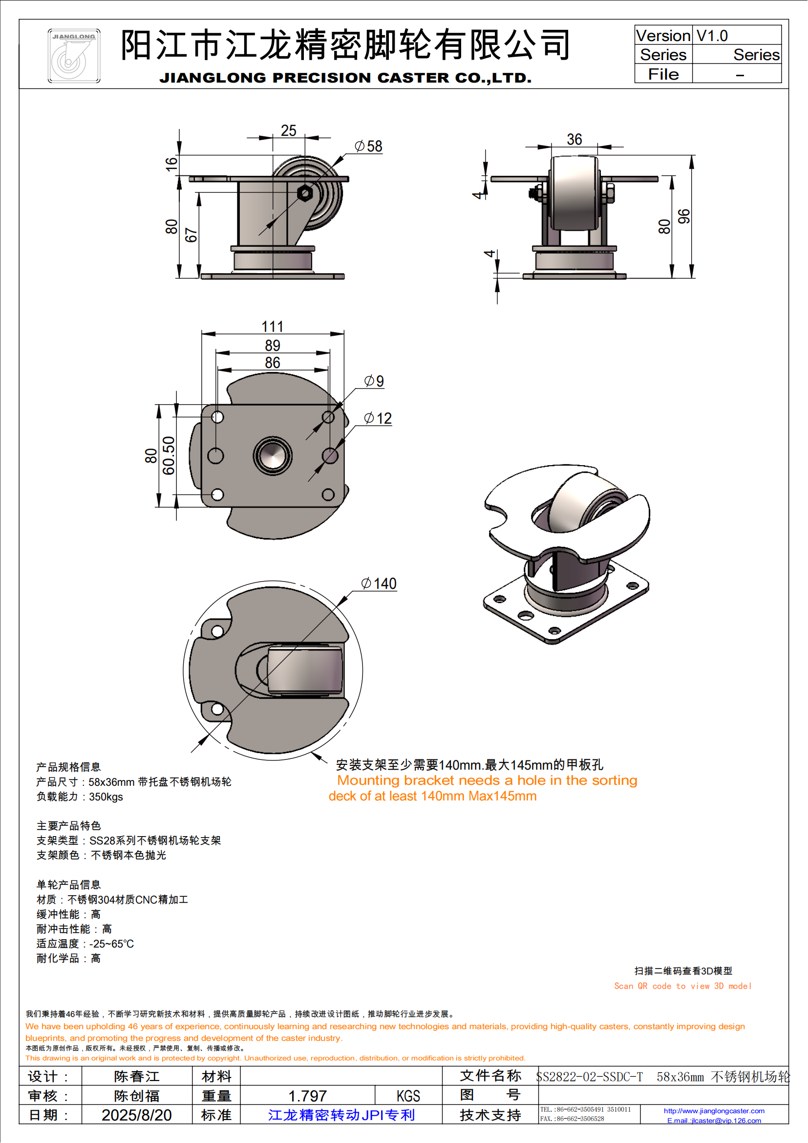SS2828-02-SSDC-T 70x36mm 不锈钢机场轮