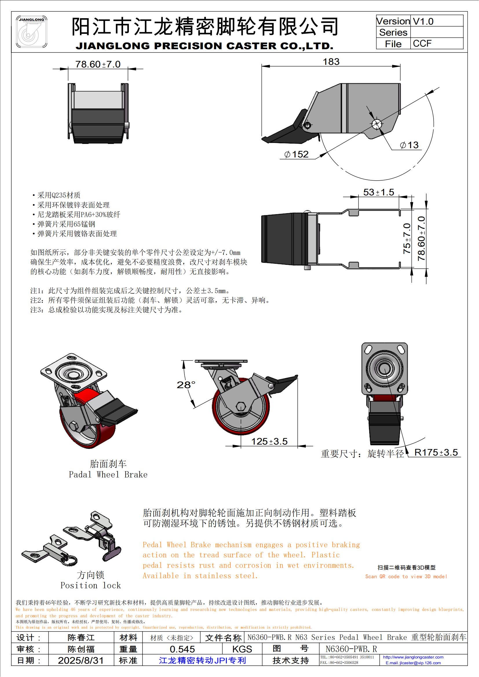 N6360-PWB.R N63 Series Pedal Wheel Brake 重型轮胎面刹车