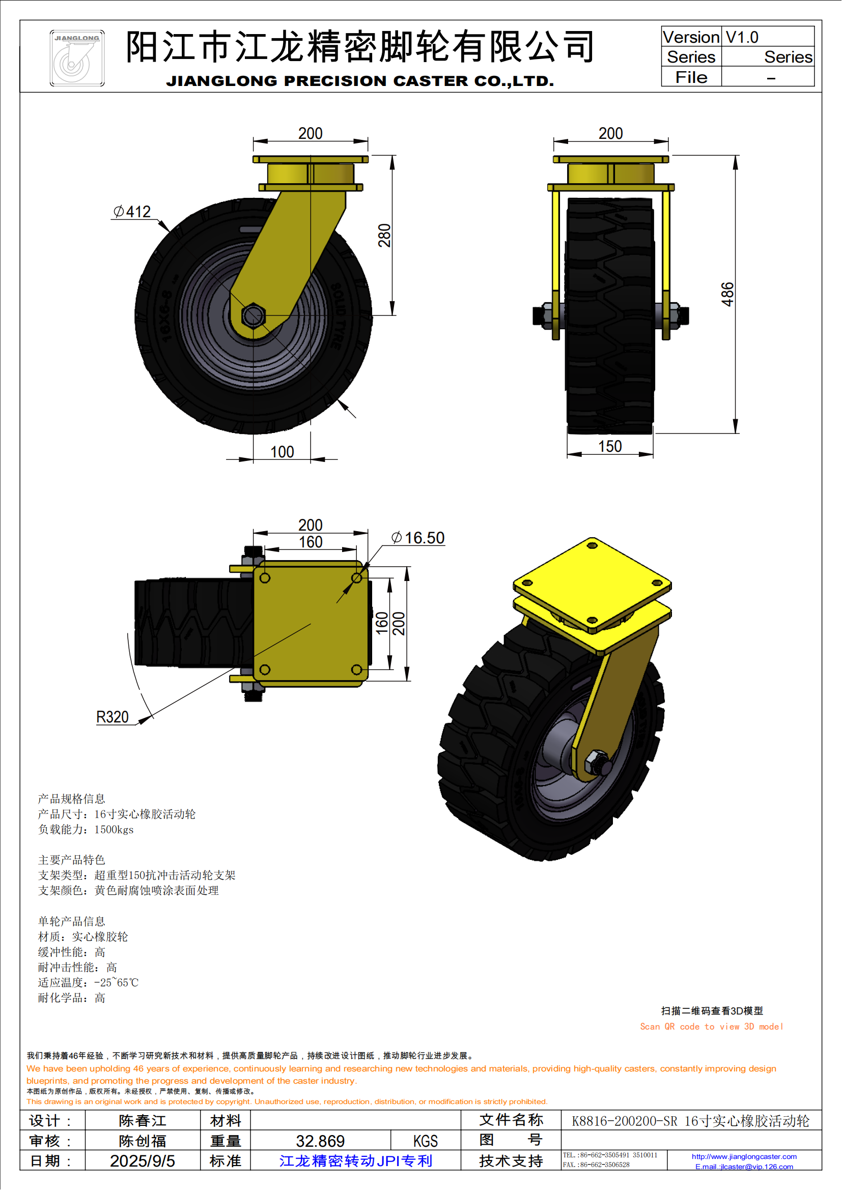 K8816-200200-SR 16寸实心橡胶活动轮