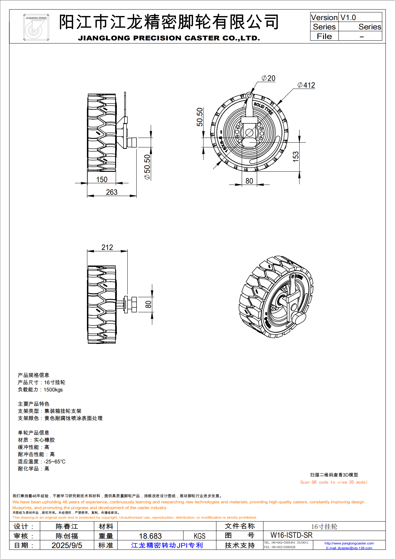 W16-ISTD-SR 16寸实心橡胶挂轮