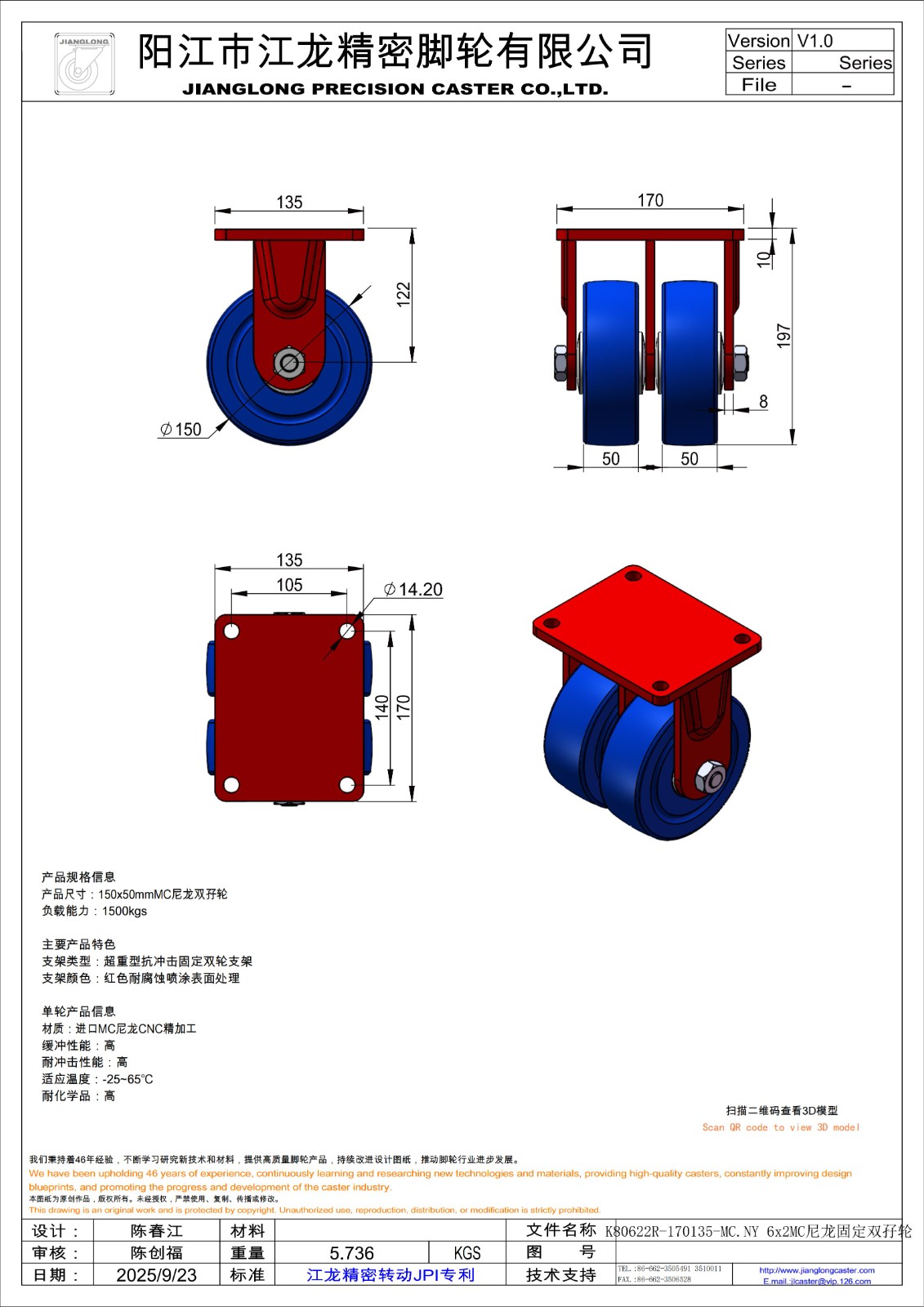K80622R-170135-MC.NY 6x2MC尼龙固定双孖轮