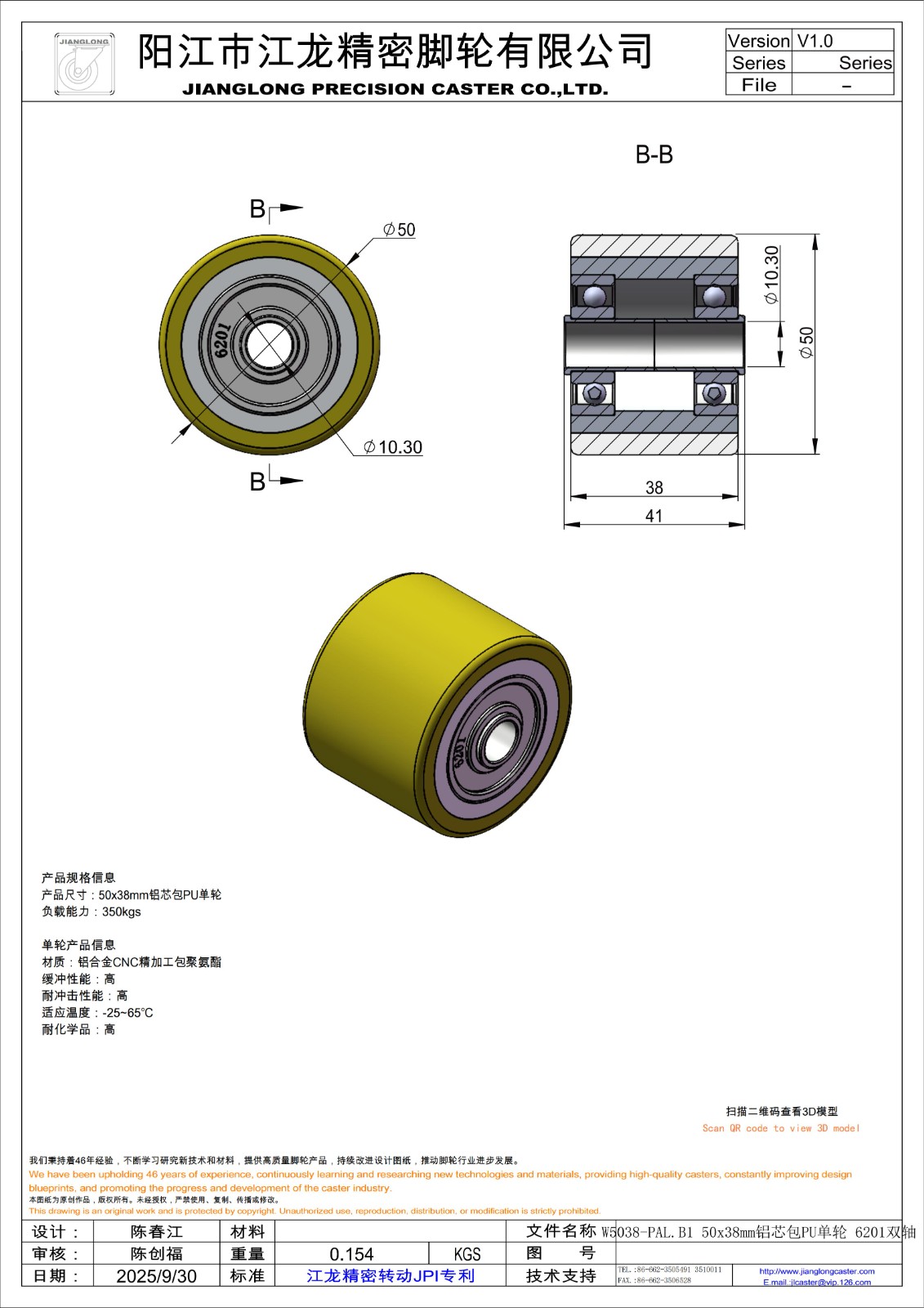 W5038-PAL.B1 50x38mm铝芯包PU单轮 6201双轴.STL